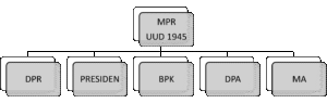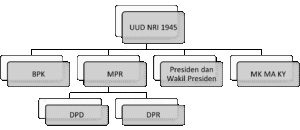 - UUD NRI Tahun 1945 membentuk struktur ketatanegaraan yang bertumpu pada kekuasaan tertinggi di tangan MPR yang sepenuhnya melakukan kedaulatan rakyat, yang mengakibatkan tidak adanya saling mengawasi dan saling mengimbangi (checks and balances) pada institusi-institusi kenegaraan.